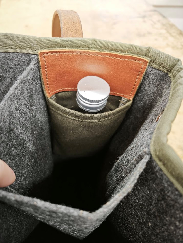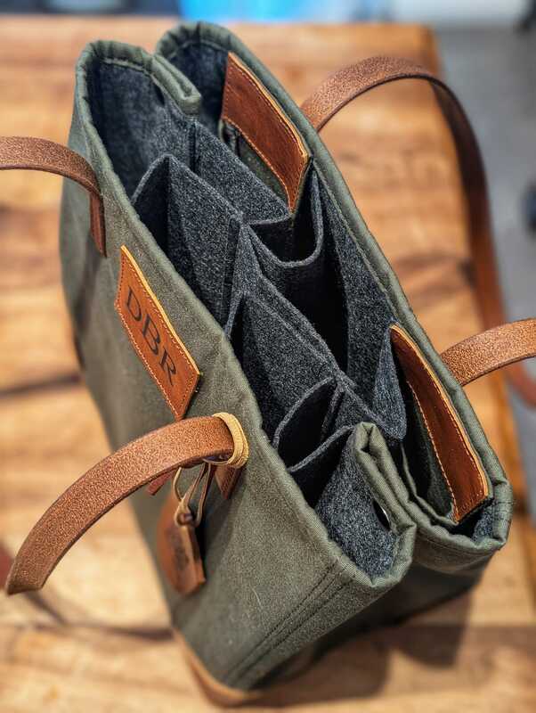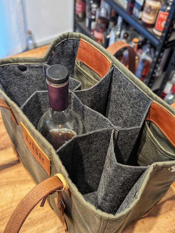 Ein must have für die Freunde des liquiden Genusses. Der "Swag Bag". In der Canvas Tasche finden 6 Flaschen ihren Platz. Sie kann bequem verkleinert werden mit zwei Druckknöpfen auf der Seite. Der Boden und die Ecken wurden mit Leder verstärkt. Auf der Innenseite befinden sich zwei zusätzliche Taschen für dinge des Alltags. Die Tasche kann mit einem Logo oder Initialen personalisiert werden. Dieses Produkt wurde von Hand in unserer Sattlerei gefertigt. A must-have for lovers of fine spirits. The “Swag Bag.” This canvas bag holds 6 bottles. It can be easily adjusted to a smaller size using two snap fasteners on the side. The bottom and corners are reinforced with leather. On the inside, there are two additional pockets for everyday items. The bag can be personalized with a logo or initials. This product was handcrafted in our saddlery. |
